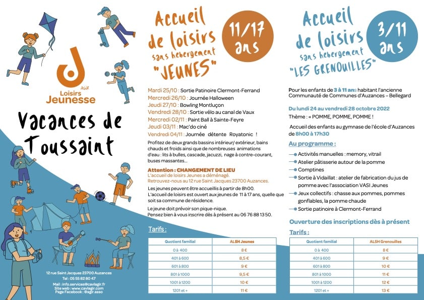 Pour les enfants de 3 à 11 ans habitant l’ancienne Communauté de Communes d’Auzances – Bellegard